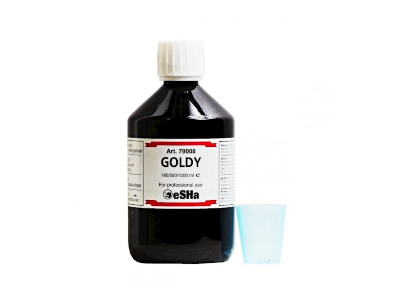 eSHA GOLDY čistí a osvěžuje vodu vašim rybám. Odstraňuje odpadní látky a pomáhá rybám snadněji dýchat tím, že zvyšuje množství kyslíku ve vodě. Voda zůstává déle čistá.
