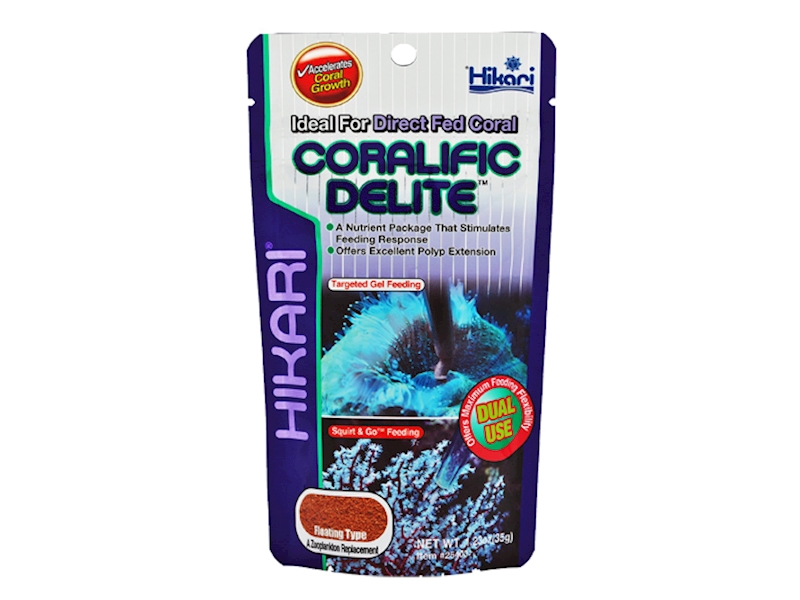 Coralific Delite ™ je revoluční strava, která byla vyvinuta speciálně pro korály a jejich jedinečné nutriční potřeby a nabízí dva způsoby krmení; „Targeted Gel Feeding“ přímo na ústí specifického korálu nebo „Squirt & Go ™ Feeding“, které umožňuje korálovým polypům zachytit potravu ve vodním sloupci, jako by to bylo v zooplanktonu.