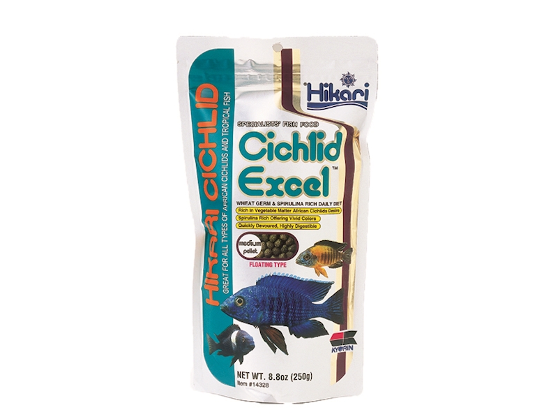 Vynikající krmivo s vyváženou kombinací rostlinných složek, odpovídá nutričním potřeba většiny býložravých ryb. Krmivo obsahuje pšeničné klíčky, které mají vysoký obsah vitaminu E a tím u ryb podporují dlouhodobé zdraví a sílu. Obsahují také kyselinu linolovou, která podporuje zdravý vnitřních orgánů a aktivní reprodukci. Další výhodou pšeničných klíčků, které jsou zastoupeny v každém granulátu Hikari Cichlid Excel, je snadná stravitelnost