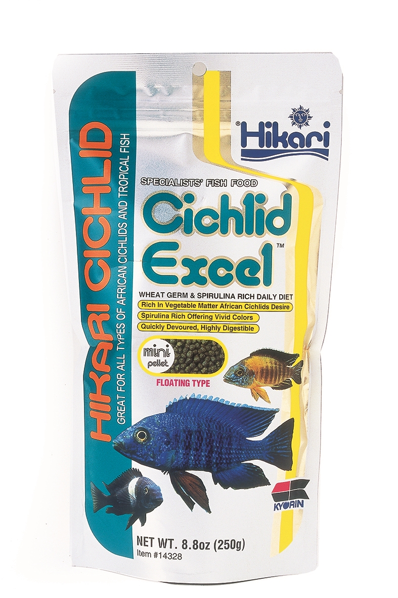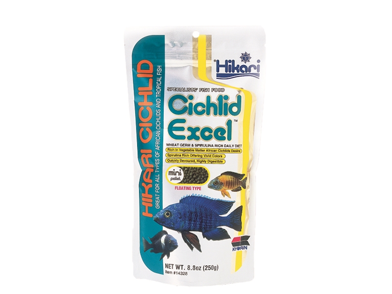 Vynikající krmivo s vyváženou kombinací rostlinných složek, odpovídá nutričním potřeba většiny býložravých ryb. Krmivo obsahuje pšeničné klíčky, které mají vysoký obsah vitaminu E a tím u ryb podporují dlouhodobé zdraví a sílu. Obsahují také kyselinu linolovou, která podporuje zdravý vnitřních orgánů a aktivní reprodukci. Další výhodou pšeničných klíčků, které jsou zastoupeny v každém granulátu Hikari Cichlid Excel, je snadná stravitelnost.
