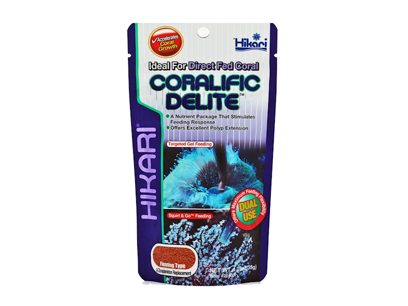 Coralific Delite ™ je revoluční strava, která byla vyvinuta speciálně pro korály a jejich jedinečné nutriční potřeby a nabízí dva způsoby krmení; „Targeted Gel Feeding“ přímo na ústí specifického korálu nebo „Squirt & Go ™ Feeding“, které umožňuje korálovým polypům zachytit potravu ve vodním sloupci, jako by to bylo v zooplanktonu.