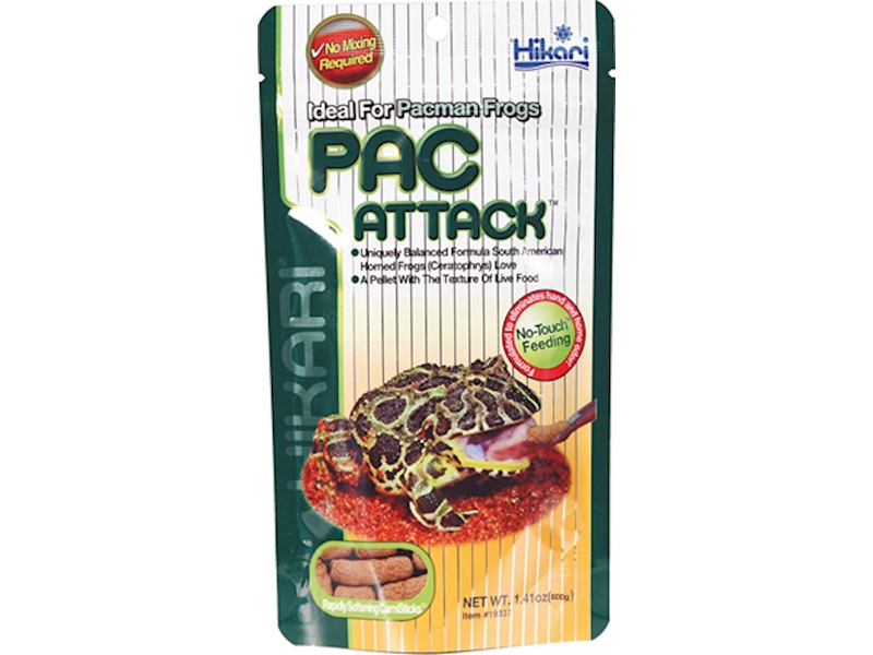 Houbovitá tyčinka, která po namočení do vody rychle změkne a má tak konzistenci živého krmiva, po kterém většina žab "Pacman" touží. Obsahuje vápník a jedinečně vyváženou směs živin, která podporuje imunitní systém a současně eliminuje potřebu doplňkového krmení. Krmivo PAC ATTACK oproti konkurenčním produktům nezapáchá.