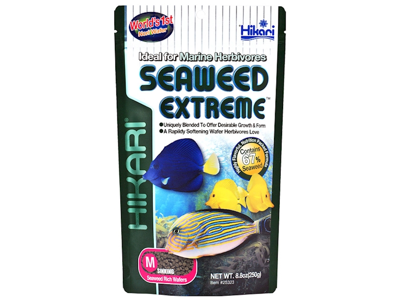 Krmení: Dávejte rybám dvakrát až třikrát denně takové množství krmiva, které jsou schopny zkonzumovat během dvou minut. Hikari Seaweed Extreme rychle absorbuje vodu a má jemnou texturu podobnou mořské řase Nori. Dbejte na to, aby se ryby nepřekrmovaly.