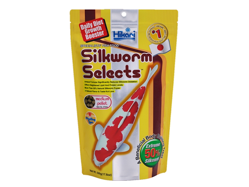 - Pod 20 °C důrazně doporučujeme použít Silkworm Selects jako přilepšení ke krmivu v množství 10% z celkového množství podávaného krmiva v kombinaci s ostatními krmivy Hikari KOI. Při nižších teplotách vody doporučujeme Hikari Wheat-Germ.