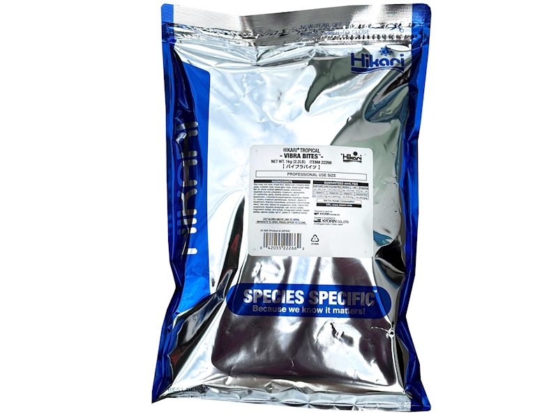 Kompletně bezpečná alternativa krmiva HIKARI® TROPICAL VIBRA BITES ™ bylo vyvinuto tak, aby pelety měly tvar a vzhled živé krvavé patentky, kterou ryby tak zbožňují. Jedinečně vyvážená formulace nabízí výživné hodnoty klasických patentek a přitom neexistuje riziko parazitárních a bakteriálních nákaz. Jedinečné přísady nabízejí vynikající chuť, které ryby neodolají.