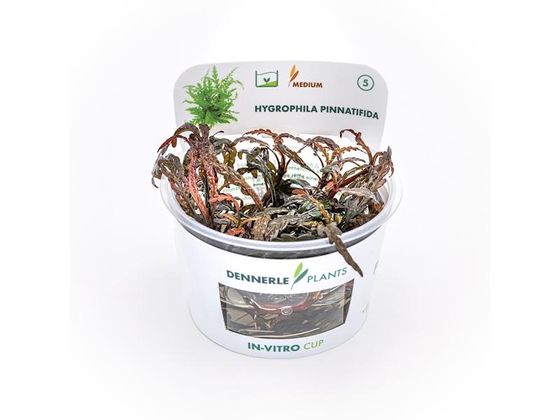Nový neobvyklý druh rostliny pocházející z Indie. Hygrophila pinnatifida je k dostání teprve několik málo let. Za tuto dobu si ovšem získala velkou oblibu a je stále častěji k vidění v nejrůznějších rostlinných nádržích. Listy této odrůdy jsou velmi atraktivně zbarvené – od rezavě hnědé až po olivově zelenou. Jejich forma navíc připomíná jemnou strukturu peří. Působivost této varianty znásobíte kombinací s rostlinami s klasickým jednoduchým tvarem listu. Dalším výjimečným znakem této odrůdy je schopnost porůstat kameny a kořeny, což je pro stonkové rostliny velice atypická vlastnost.