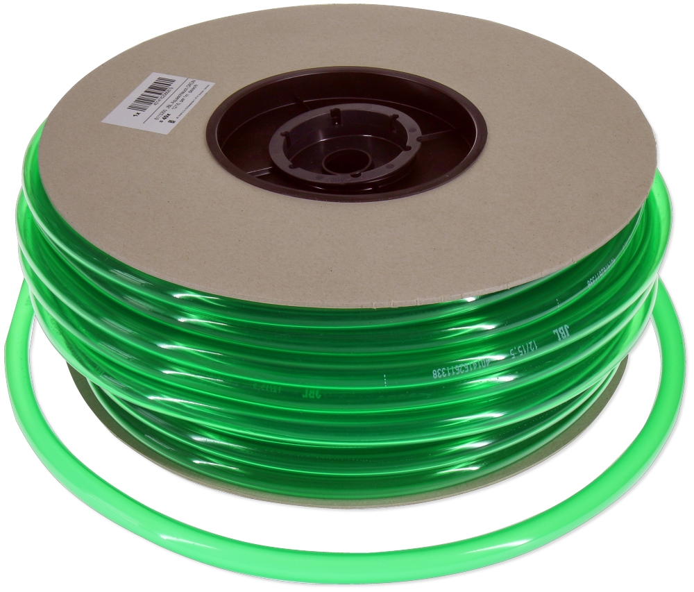 - Obsah dodávky: Ekologická lepenková cívka s navinutou hadicí (neohnutou), barva zelená průhledná