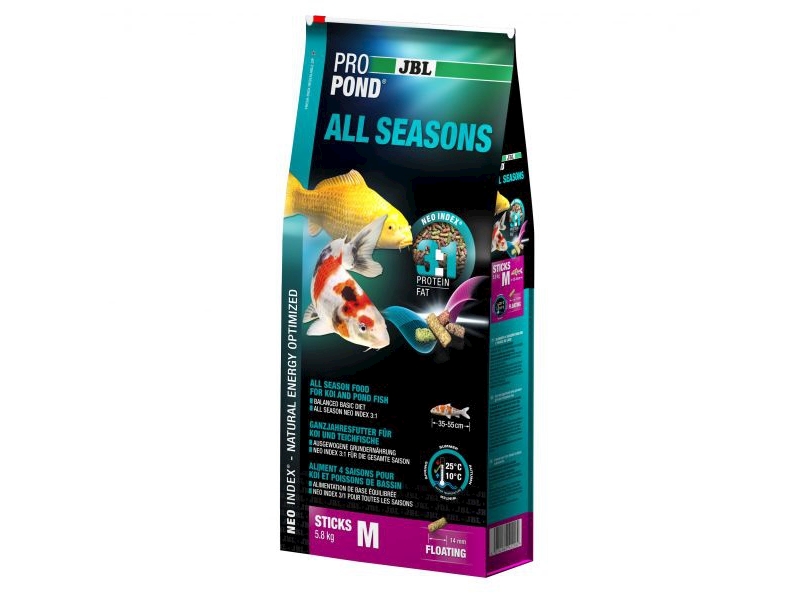 - Hlavní krmivo se správným poměrem proteinů a tuků 3:1 dle NEO indexu, teploty vody, funkce, velikosti a stáří zvířat