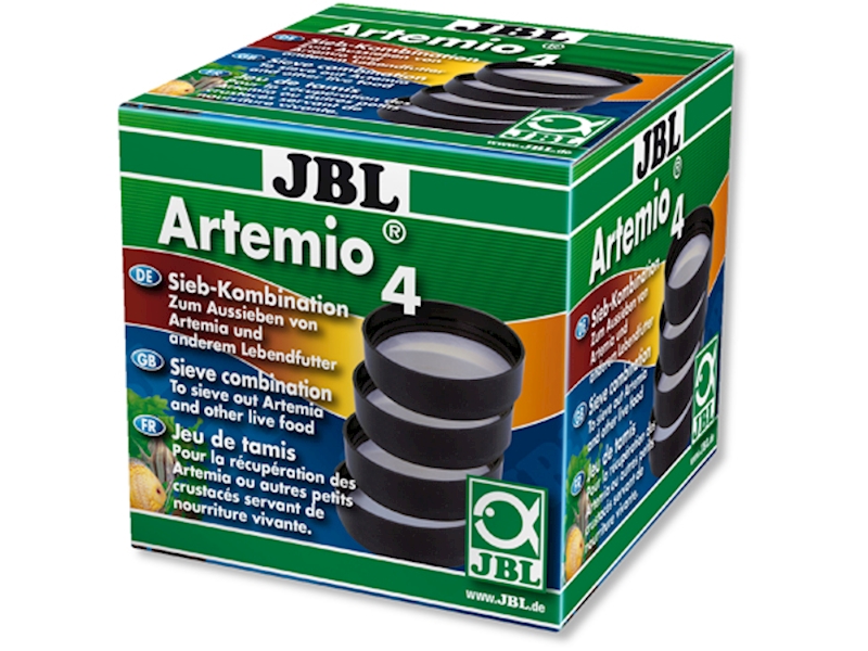 - Sada sít k vybírání různých velkých druhů živého krmiva mezi 0,15 a 1,0 mm. Přesně sedí na záchytnou nádobku JBL Artemio 2