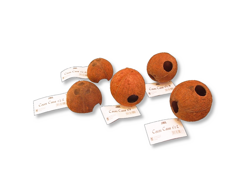 - Úkryt a místo pro tření ryb, místo ke spánku a úkryt pro terarijní živočichy: Skořápky kokosových ořechů pro akvária a terária