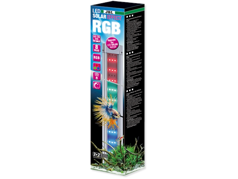 • RGB LED vytváří červenou, zelenou, modrou bravu a smíšené barvy , individuálně volitelně na dálkové ovládání JBL LED SOLAR NATUR, stmívací v 7 stupních, efekty rozšířitelné o ovládání pomocí mobilního telefonu s aplikací JBL LED SOLAR CONTROL App