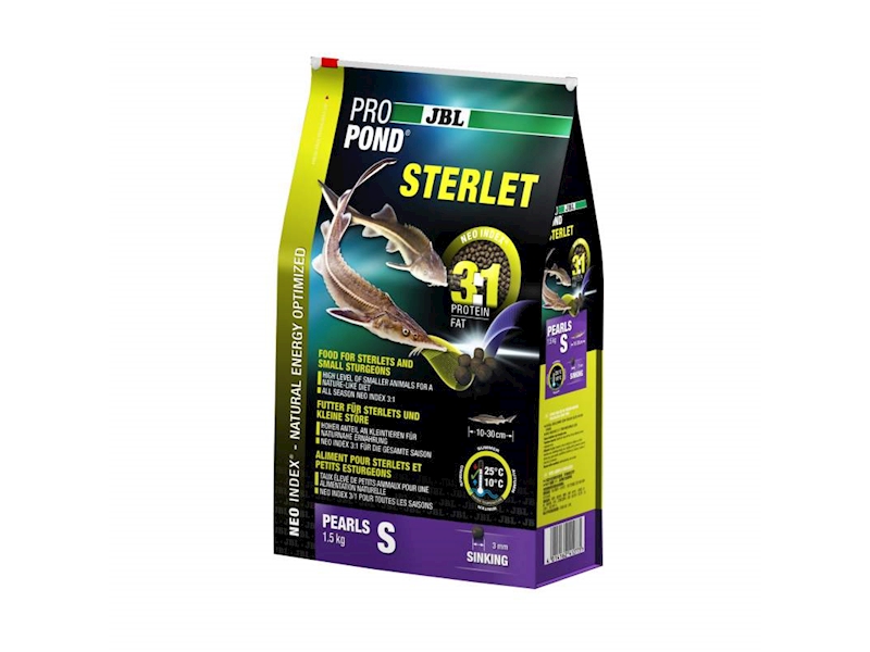 - S lososem, garnáty, sépií, řasou spirulina a gammarus pro silné a zdravé jesetery (při teplotě vody 10-25 °C)