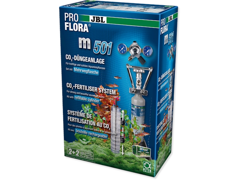 - Balení obsahuje: láhev CO2 500 g plnitelná, stojan, omezovač tlaku, reaktor JBL Taifun 27 cm, počitadlo bublin, 3 m speciální hadice, zpětná pojistka, permanentní test CO2/pH, 2x kapalné hnojivo a 1x denní hnojivo