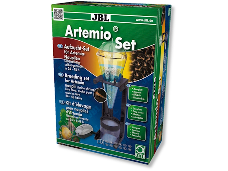- Balení: 1 sada pro chov živého krmiva, sada Artemio, vč. 1 trychtýřovité inkub. nádrže s víkem, stojanu se šrouby, 1 provzdušňovacího čerpadla, 1 nádrže pro odchyt se sítem, 1 síta artemia, vzduch. hadice 1,8 m, zpětného ventilu