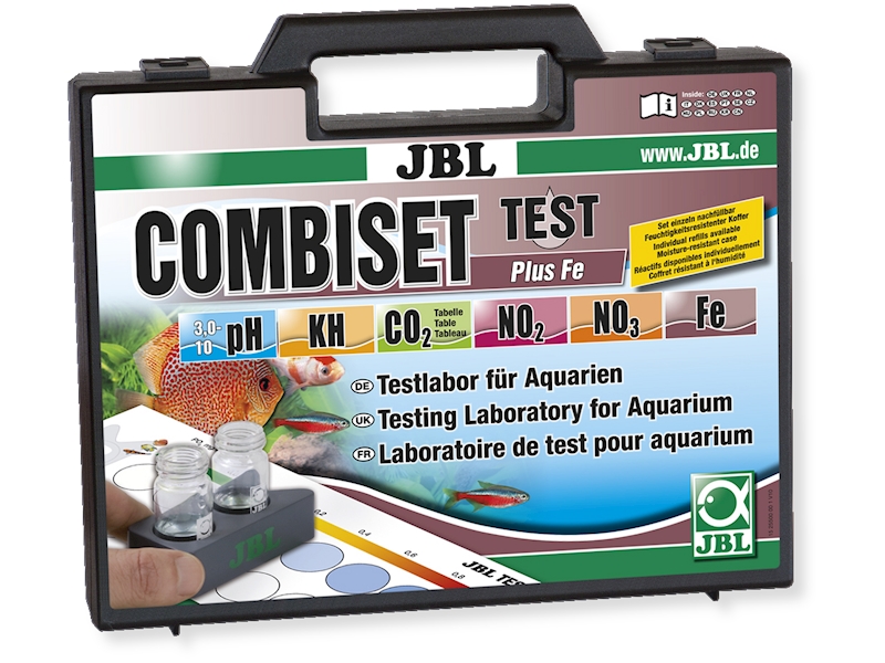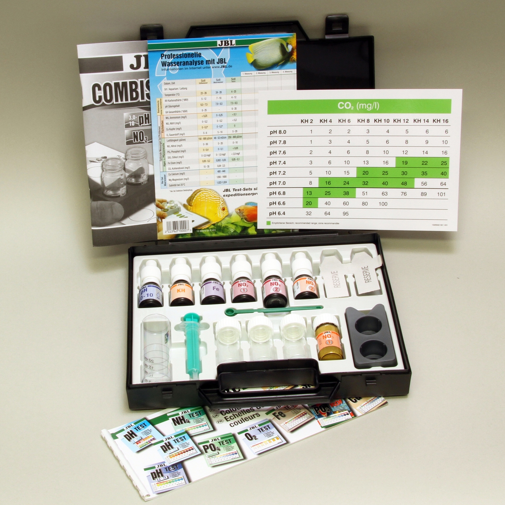 - Jednoduchá a spolehlivá kontrola hodnot vody v akváriu. Stanovení: hodnoty pH, karbonové tvrdosti, železa, dusitanů, dusičnanů, CO2 (výpočet v tabulce)