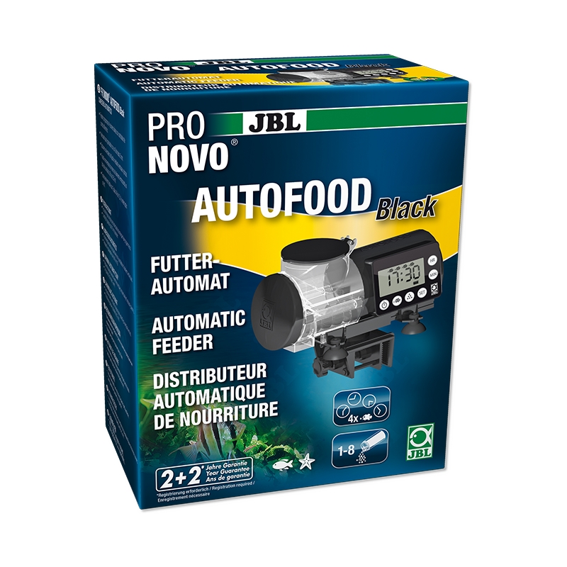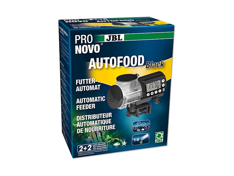 - Obsah dodávky: zakrmovací automat pro akvarijní ryby s držáky a 3 x 1,5 V AA bateriemi a adaptérovým kroužkem pro 250 ml dózy JBL PRONOVO.