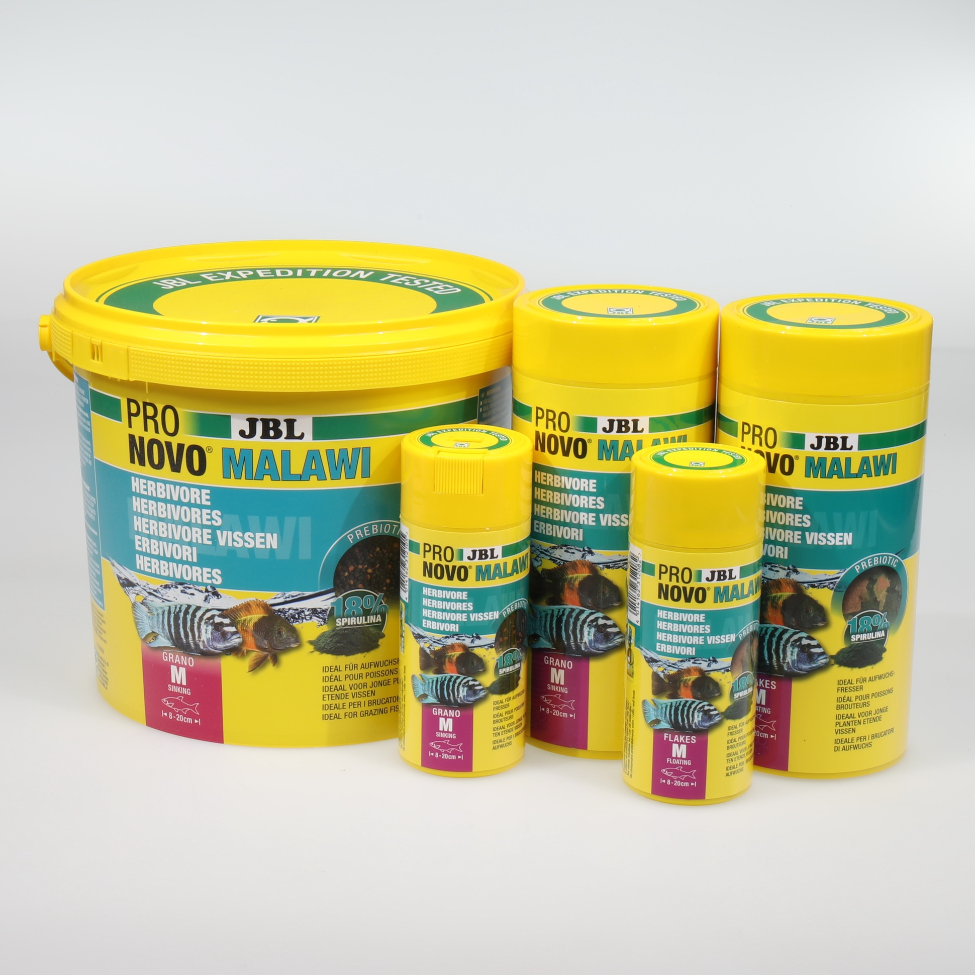 - Protože drtivá většina cichlid pocházejících z jezera Tanganika je dravá, potrava pro dravé druhy byla pojmenována PRONOVO TANGANYIKA. Jelikož většina druhů pocházejících z jezera Malawi se živí planktonem pojmenovala společnost JBL toto krmivo PRONOVO MALAWI.