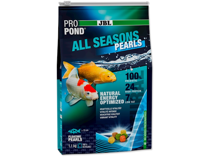 Plovoucí granule s obsahem 24 % bílkovin, 7 % tuků, 6 % hrubé vlákniny a 6 % hrubého popela. Bez konzervantů. - Granulované krmivo v znovuuzavíratelném, vzduchotěsném, vodotěsném a světlotěsném obalu pro zachování kvality. Obal je vyroben z jednoho materiálu a lze jej plně recyklovat bez nutnosti třídění.