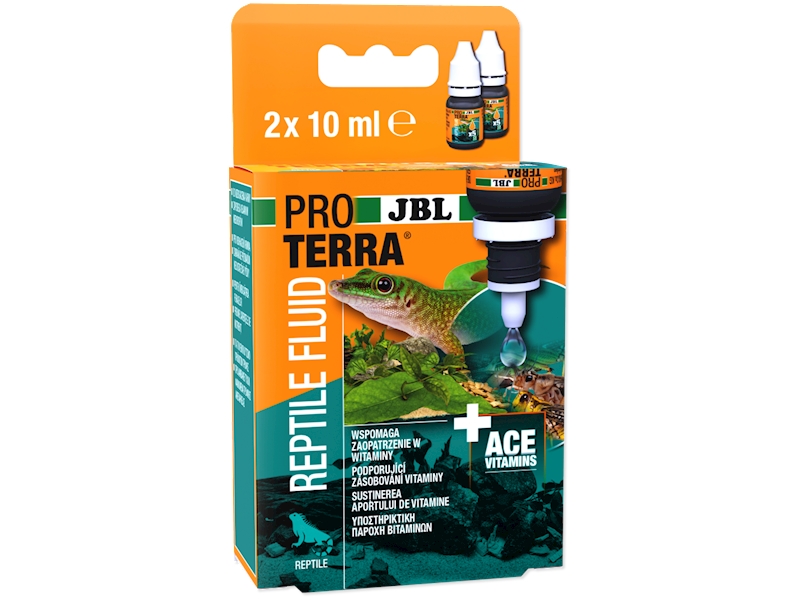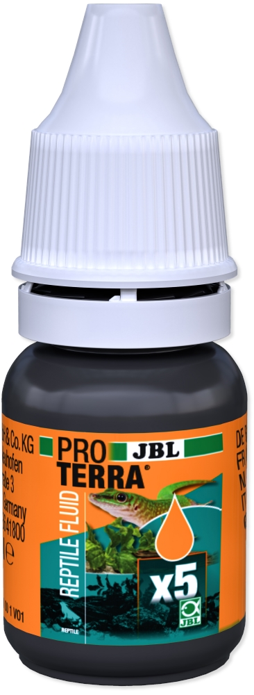 Plazi, obojživelníci a další zvířata chovaná v teráriích získávají ve svém přirozeném prostředí základní vitamíny, minerály a stopové prvky z potravy. Přestože se v péči o terária snažíme dosáhnout téměř přirozené stravy, nedaří se nám to zcela. Když například krmíme živočichy potravou, jako jsou cvrčci nebo kobylky, nepocházejí tito živočichové z přirozeného biotopu našich terarijních zvířat, a nemají tedy k dispozici svou běžnou potravu! Z důvodů ceny zvířata určená jako živé krmivo často nedostávají žádnou nebo jen horší potravu na rozdíl od přírody. Proto je obohacování potravy pomocí JBL PROTERRA REPTILFLUID velmi užitečné, aby naše zvířata dostávala správné dávky vitamínů.