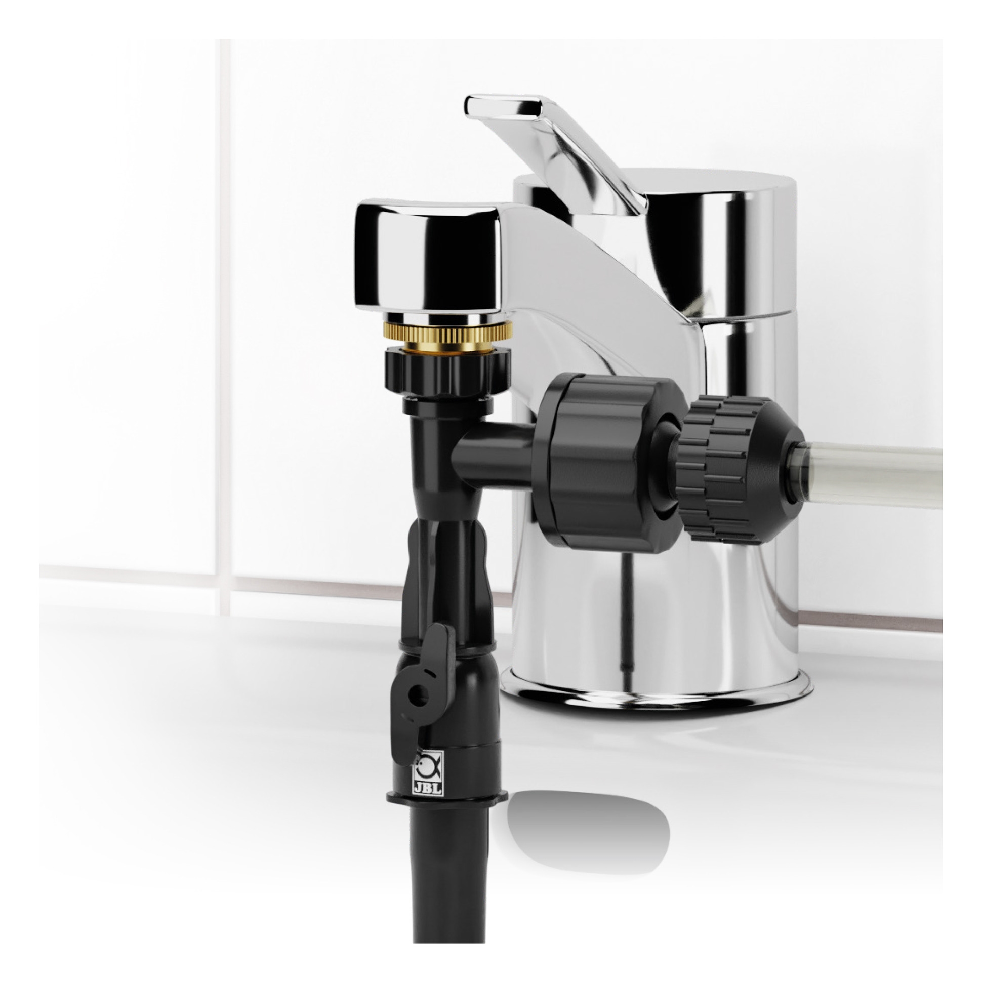 - Pumpa upevněná k vodnímu kohoutku vytváří sání protékající vodou, takže je voda nasávána hadicí z akvária nebo přenastavením páčky opět doplňována