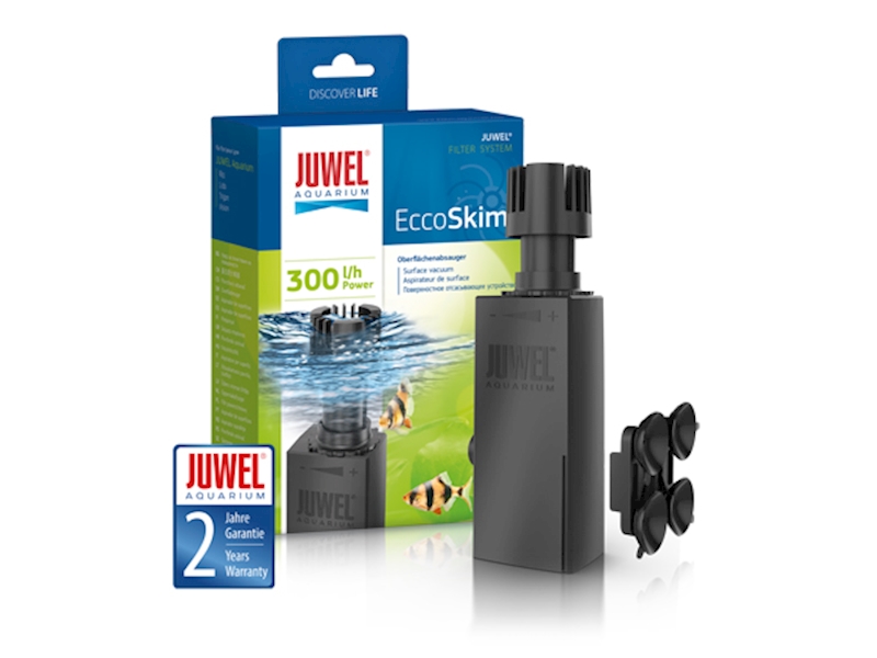 EccoSkim - povrchový skimmer - JUWEL EccoSkim kombinuje výhody povrchového skimmeru s kompaktním designem a výkonnými nastavitelnými kapacitami sklízení povrchu. S výkonem 300 l / h při spotřebě pouze 4,4 W zaručuje JUWEL EccoSkim efektivní sklizeň povrchu pro sladkovodní i mořská akvária.