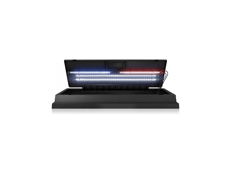 Akvarijní kryt PrimoLux 80 2.0 černý je pro všechna akvária o rozměrech 80 x 35 cm. Osvětlovací jednotka NovoLux 80 LED 10W, která je součástí dodávky, se snadno připevňuje a zaručuje optimální osvětlení vašeho akvária. Kryty akvárií PrimoLux lze také upgradovat až na tři jednotky osvětlení NovoLux LED v libovolné barevné kombinaci. Speciální konstrukce krytu Primo znamená, že případná kondenzace je při zavřeném akváriu odváděna zpět do akvária. Integrovaná krmná klapka pro krmení vašich ryb je kompatibilní s automatickým krmítkem od JUWEL. Pro vaši bezpečnost byl kryt LED PrimoLux testován TÜV GS.