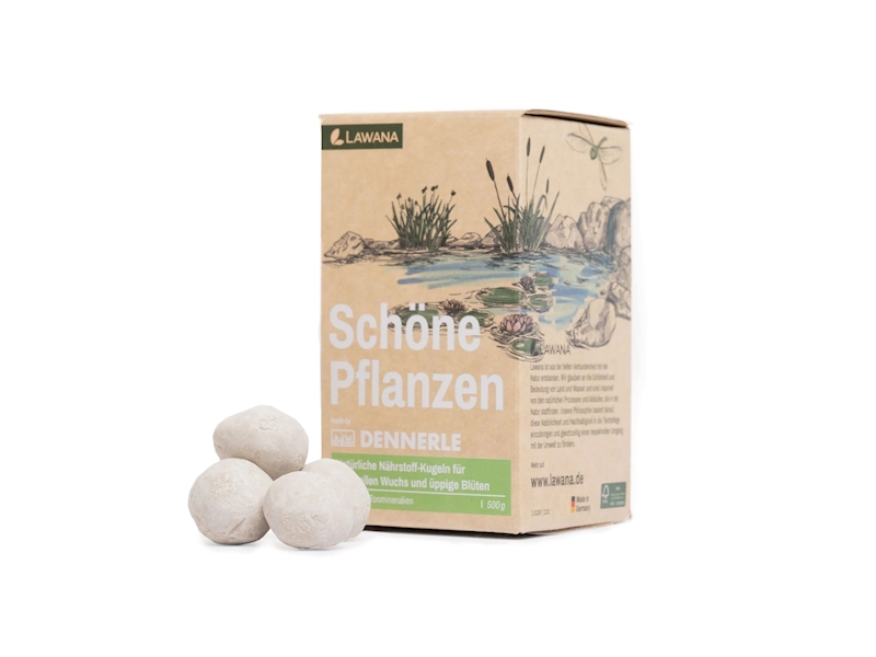 Nutriční kuličky Lawana Schöne Pflanzen pomáhají všem rostlinám v jezírku rychle a úspěšně začít. Dodávají leknínům a pobřežním rostlinám životně důležité živiny, minerály a stopové prvky. Živné kuličky vyrobené ze 100% přírodních jílových minerálů podporují silný a zdravý růst, sytě zelené listy a svěží květy. Jsou také ideální pro vrchní hnojení a pomoc při zastavení růstu. Živné kuličky Lawana nepodporují řasy, protože se hnojí pouze kořeny, nikoli voda. Když jsou vysazeny nové rostliny, jsou přidány do koše na rostliny a jednoduše zatlačeny shora do kořenové oblasti rostlin pro dodatečné hnojení.