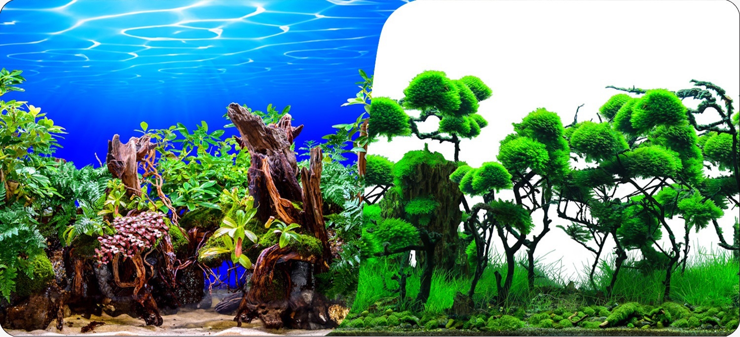 Oboustranná akvarijní fototapeta MACENAUER vám nabízí dva atraktivní designy pozadí, které dodají Vašemu akváriu elegantní a působivý vzhled.