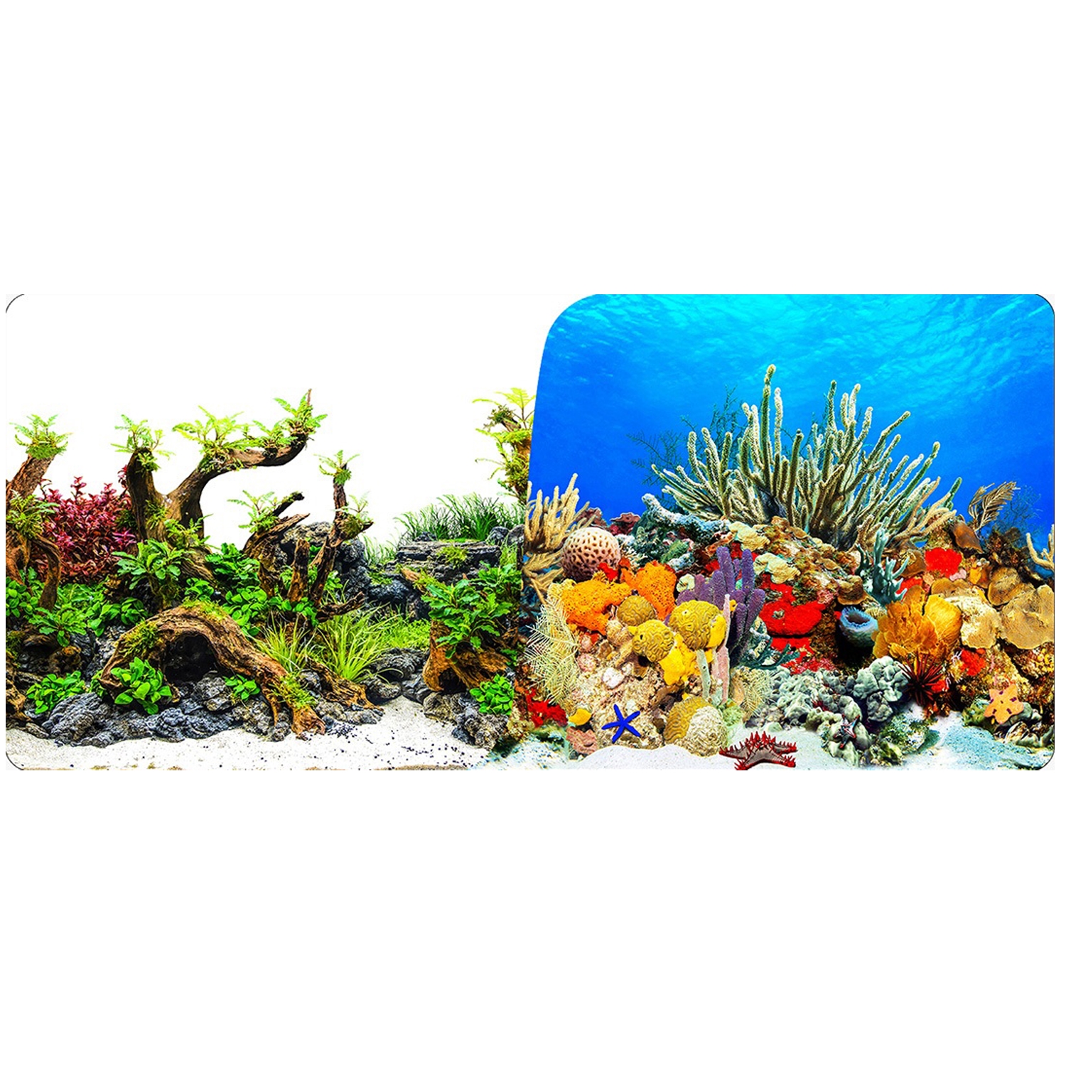 Oboustranná akvarijní fototapeta MACENAUER vám nabízí dva atraktivní designy pozadí, které dodají Vašemu akváriu elegantní a působivý vzhled.