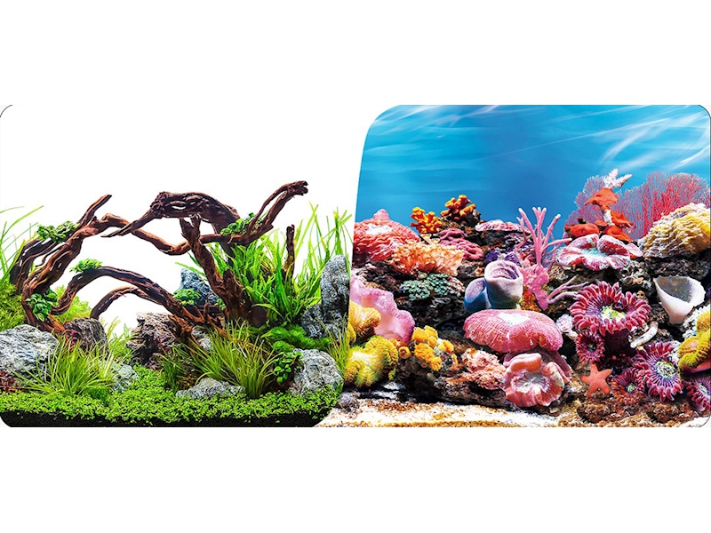 Oboustranná akvarijní fototapeta MACENAUER vám nabízí dva atraktivní designy pozadí, které dodají Vašemu akváriu elegantní a působivý vzhled.
