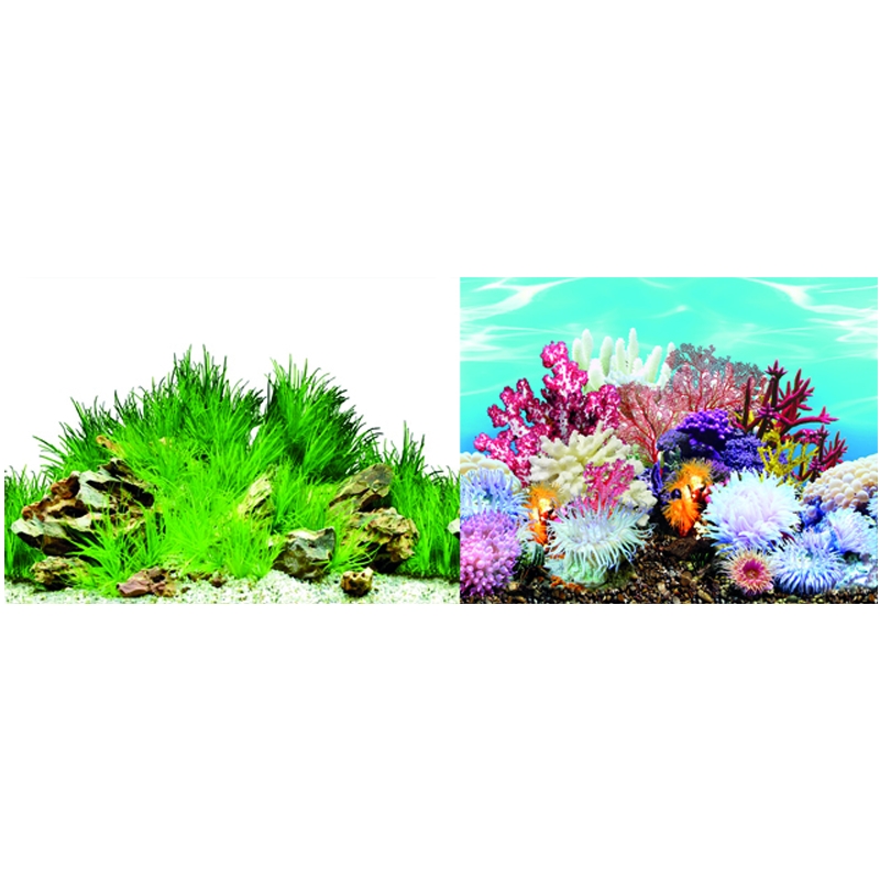 Oboustranná akvarijní fototapeta MACENAUER vám nabízí dva atraktivní designy pozadí, které dodají Vašemu akváriu elegantní a působivý vzhled.