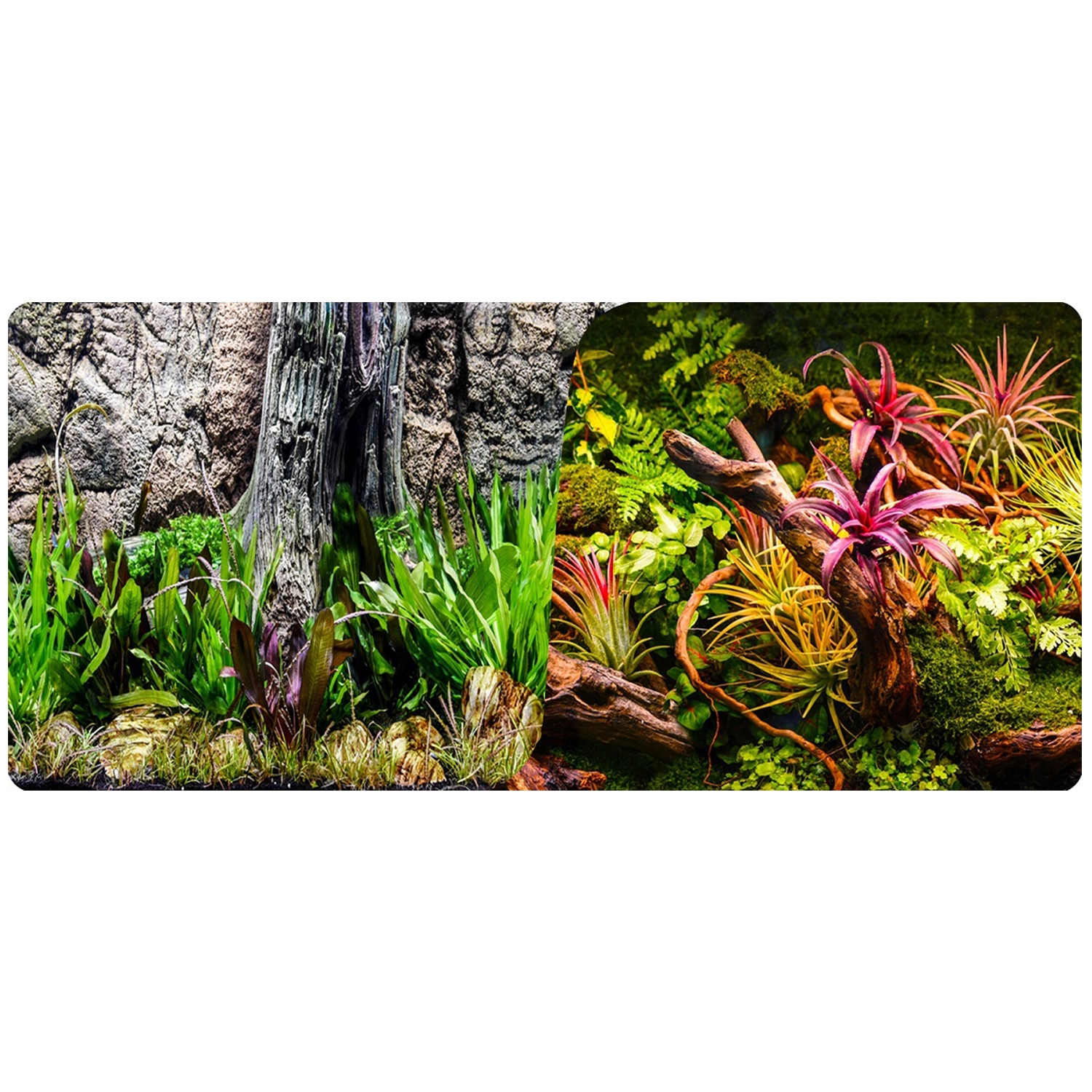 Oboustranná akvarijní fototapeta MACENAUER vám nabízí dva atraktivní designy pozadí, které dodají Vašemu akváriu elegantní a působivý vzhled.