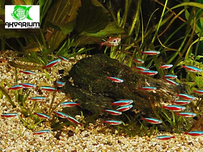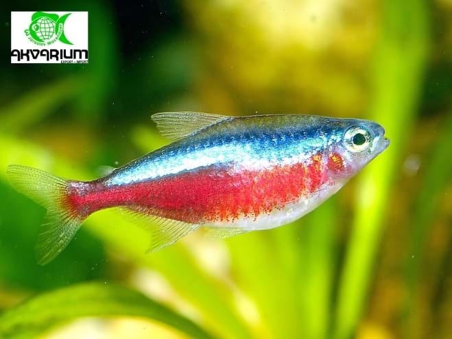 Podrobný popis: Velice rozšířená mírumilovná, hejnovitá rybka, jedna z nejoblíbenějších ryb mezi akvaristy. Na boku má svítivě modrý pruh, spodní část těla je červená (od hlavy až po ocas), ve svítivých modrých pruzích na obou bocích jsou droboučké zářivé částečky, které odráží světlo podobně jako reflexní páska na bundě. V jejich domovině obývají tmavé pralesní potoky a tyto pruhy jim pomáhají, aby neztratily kontakt s hejnem. Pozor na množství dusitanů ve vodě. Miluje hustě osázená akvária, která nesmí být příliš osvětlena. Začínající akvaristé ji mohou zaměnit s Tetrou neonovou (Neonka obecná).