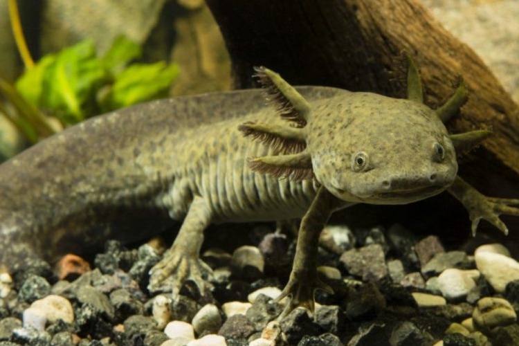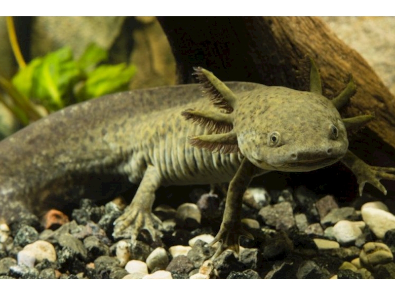 Podrobný popis: Je to obojživelník s nápadnými vnějšími žábrami. Dosahuje hmotnosti až 300 g. V přírodě je obyčejně tmavě šedý nebo černý, ale v zajetí se většinou chová albinotická varianta. V současnosti již existuje více vyšlechtěných barevných variant.
