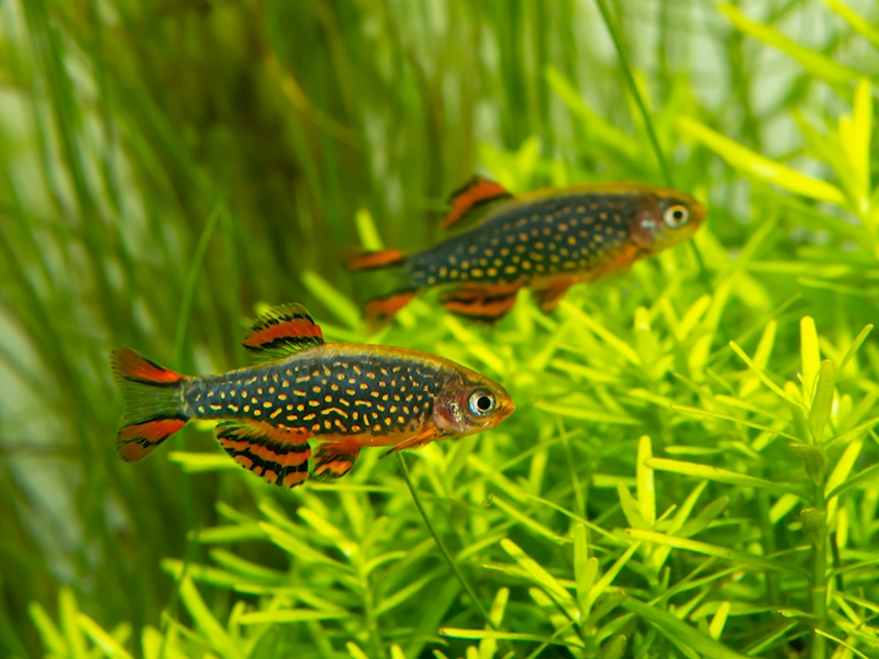 Odchov: Rozmnožování není těžké, ale problém je u rozkrmení plůdku, který je velmi malý a proto ho musíme krmit tou nejjemnější potravou (vířníci, nálevníci). Pro odchov stačí 12 litrová elementka s jávským mechem a třecím roštem (rodiče své jikry často požírají). Zde necháme třít menší skupinku a po nakladení jiker (cca 3 dny) je z akvária odebereme a odstraníme třecí rošt. Ryby dospívají po dosažení velikosti 12-15 mm.