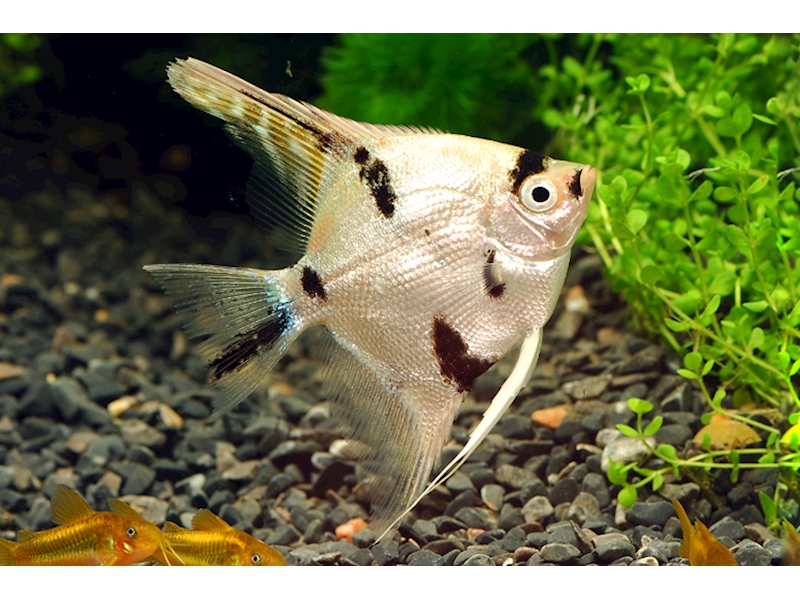 Podrobný popis: Skaláry vyžadují bezpodmínečně dostatek různorodé živé potravy, stejnou potravu přestanou po čase přijímat. Chováme je ve velkých nádržích, vysokých alespoň 50 cm (v dospělosti měří ryba na výšku až 22 cm), osázených úzkolistými rostlinami. Jsou to majestátní, dlouhověké, klidné ryby, pouze v období tření, kdy tvoří revíry, jsou agresivnější. Mohou být lekavé a citlivé na hluk, choulostivé při transportu. Mnohdy z neznámého důvodu hynou. Skaláry se dají chovat s menšími rybkami jen tehdy, pokud jsou na ně zvyklé od malička. Jinak se stává, že skaláry menší rybky požírají. Při nízké teplotě trpí nemocemi. Často k vyléčení postačí zvýšit teplotu (až na 32 °C). Jsou citlivé na chemikálie. Skalára amazonská má tmavší pruhy než skalára vysoká a dosahuje menších rozměrů. Existuje celá řada vyšlechtěných forem - kouřová, černá (Black Angelfish), mramorová (Marbeled Angelfish), zlatá, albín (Albino Angelfish), zebra, koi (Koi Angelfish), červenohlavá, stříbrná, atd.