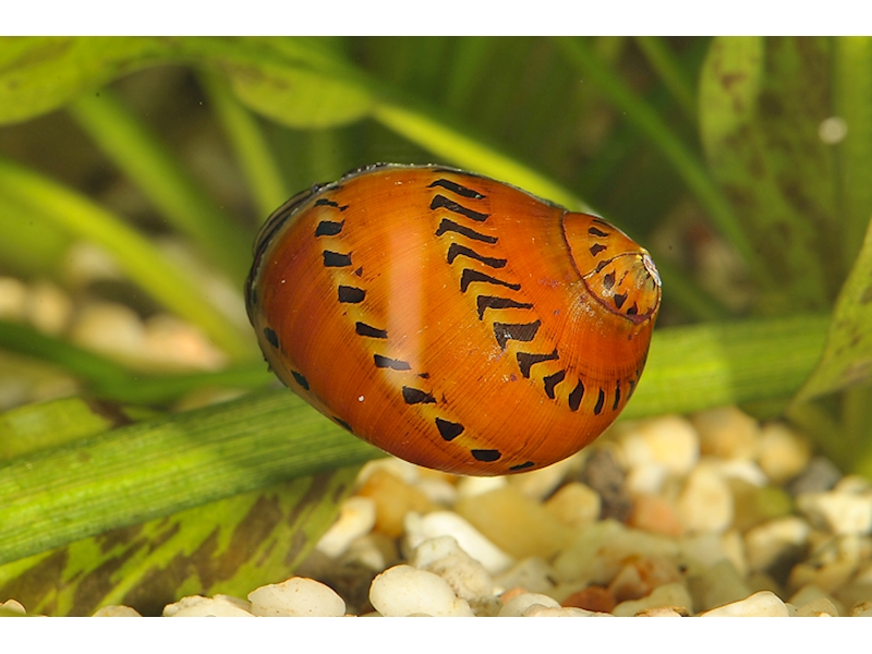 Odchov: Jsou to šneci s odděleným pohlavím, oplození je vnitřní. Samička může klást vajíčka i několik týdnů poté, co se setkala se samečkem. Vajíčka jsou bílá, vylíhne se z nich larva, která v přírodě putuje řekou do moře, aby se vyvinula, a pak přileze zpět. Z toho plyne, že když vám šneci nakladou malá bílá vajíčka, tak nikdy malé šneky neuvidíte.