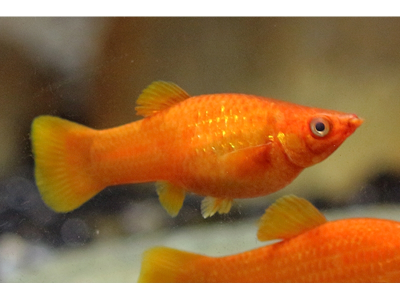 Pohlaví: Pohlaví je rozeznatelné na první pohled, samci mají pohlavní orgán - gonopodium (v kopulační orgán přeměněná řitní ploutev samců ryb z čeledi živorodkovitých). Samice jsou větší a v akváriích dorůstají do 8 cm, samci jsou menší a dorůstají do velikosti 5 cm.