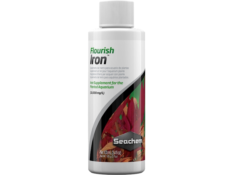 Flourish Iron je vysoce koncentrovaný (10 000 mg/l) roztok glukonátu dvojmocného železa (Fe + 2). Měl by být používán v případech, kdy požadavek na železo překračuje možnosti aplikace přípravku Flourish v doporučené dávce nebo se objeví příznaky nedostatku železa (např. krátké a štíhlé stonky nebo žloutnutí mezi žilkami). Rostliny mohou mnohem snadněji získávat železo z Flourish Iron, než z komplexů EDTA, protože veškeré železo vázané v EDTA je ve stavu iontů železitých (Fe + 3). Vzhledem k tomu, že rostliny vyžadují železo v dvojmocném stavu, musí být vynaložena další fyziologická energie, aby se extrahovalo železo z EDTA-komplexu, které se pak musí přeměnit z trojmocné na dvojmocnou formu. Neobsahuje fosfáty ani dusičnany. Flourish Iron je bezpečný pro bezobratlé, jako jsou krevetky.