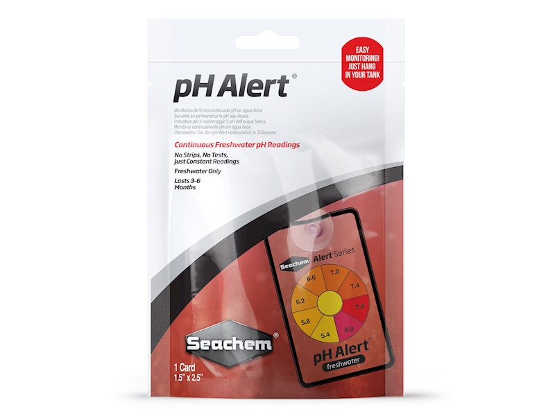 PH Alert ™ je jedinečné barevné zařízení určené k plynulému monitorování hodnoty pH přímo uvnitř akváriu nebo i filtru. Snímač mění barvu reverzibilně, aby vás upozornil na změny hodnot pH mezi 5,8 až 8,2. Zařízení je určeno pouze pro sladkovodní akvária.