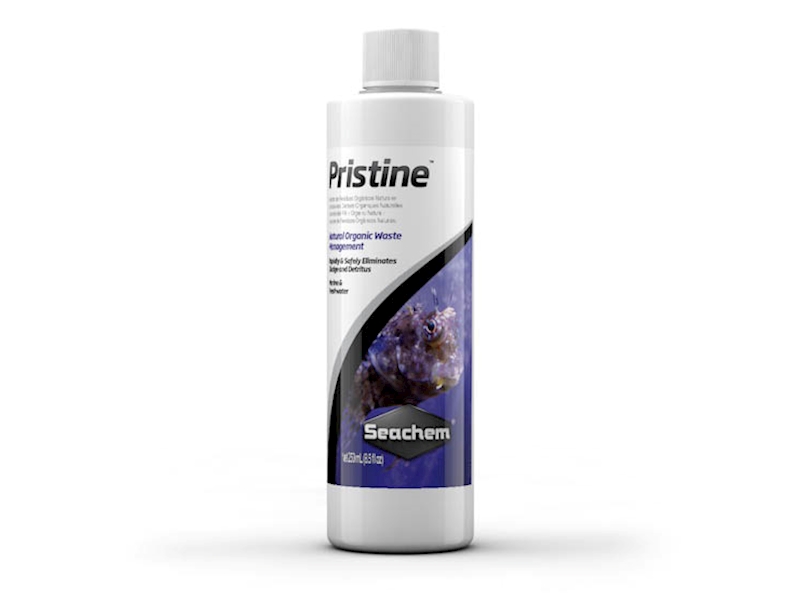 Pristine používá bio-augmentaci, nechemickou a přirozenou metodu ke zlepšení kvality vody. Obsahuje bakterie, které rozkládají přebytečné krmivo, odpad a nečistoty ve sladkovodních a mořských akváriích. Rovněž sníží nadbytečné živiny (například amoniak, dusičnany a dusitany), které mohou podpořit růst škodlivých a choroboplodných organismů. Pristine zvyšuje čistotu vody a celkově zlepšuje zdraví akvarijního ekosystému.