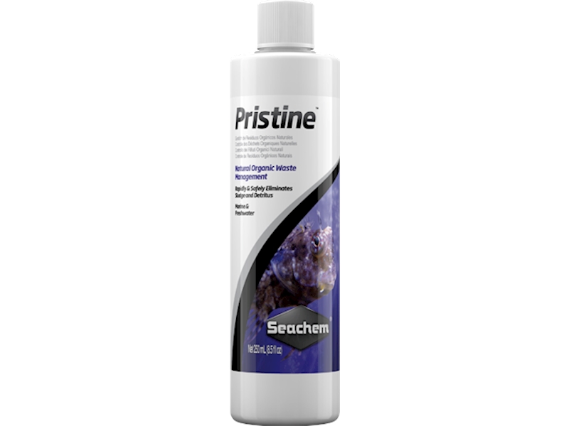 Pristine používá bio-augmentaci, nechemickou a přirozenou metodu ke zlepšení kvality vody. Obsahuje bakterie, které rozkládají přebytečné krmivo, odpad a nečistoty ve sladkovodních a mořských akváriích. Rovněž sníží nadbytečné živiny (například amoniak, dusičnany a dusitany), které mohou podpořit růst škodlivých a choroboplodných organismů. Pristine zvyšuje čistotu vody a celkově zlepšuje zdraví akvarijního ekosystému.