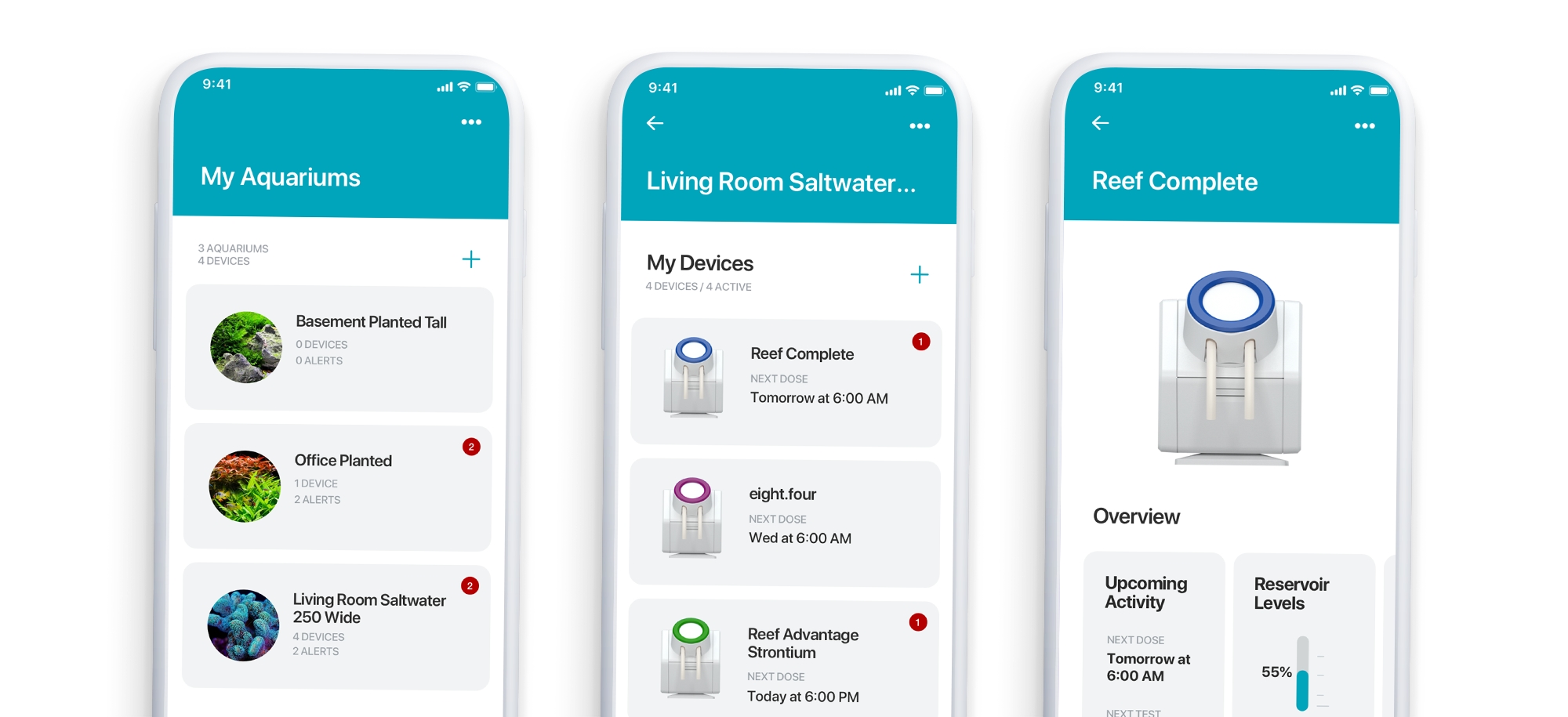 Nastavení a správa více akvárií a zařízení najednou. Přehledné statistiky, jako je hlídání hladiny v nádrži, nadcházející dávkování a plánované testy vody. Upozornění a připomenutí na záznamy o dávkování. Mějte svůj dávkovací režim pod kontrolou!