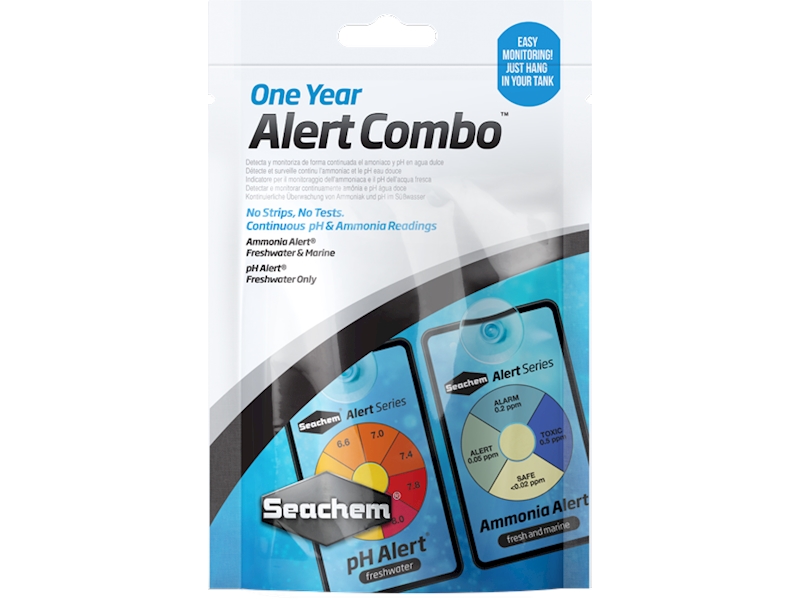 Alert Combo Pack 1 Year kombinuje roční dodávku Ammonia Alert® (1 karta) a pH Alert® (1 karta a 1 náhradní senzor).