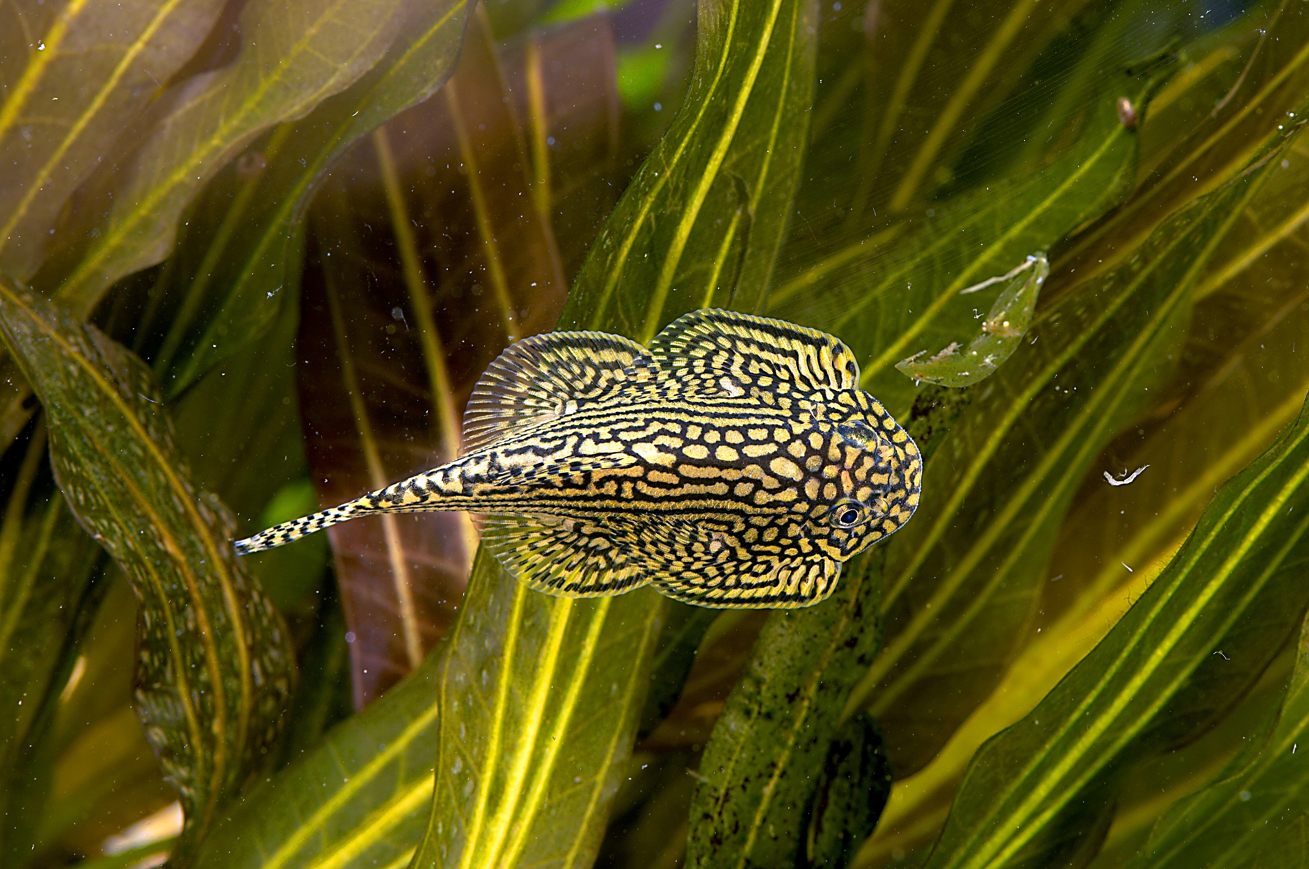 Podrobný popis: V přírodě žije ve skupinách v prudkých proudech potoků a také pod vodopády. Potřebuje dobře okysličenou vodu, pravidelné odkalování a výměnu vody, trvalý proud, písčité dno, možnost úkrytů - skalky, kořeny, ploché kameny. Tuholisté, dobře zakořeněné rostliny (rostliny nejsou nutné, v jejich domovině se nevyskytují). Aktivní především v noci (v akváriích i přes den). Požírá potěr ostatních ryb. Pozor při transportu, potřebují dostatek kyslíku. Po aklimatizaci v akváriu při vytvoření vhodných podmínek jsou bezproblémové. Ve vodě bez dostatku kyslíku nebo znečištěné odpadními látkami strádají a rychle umírají. Nesnáší přípravek NO-planaria. Po použití tohoto přípravku začnou být apatické, přestanou přijímat potravu a po třech dnech ztrácí pigment a hynou.