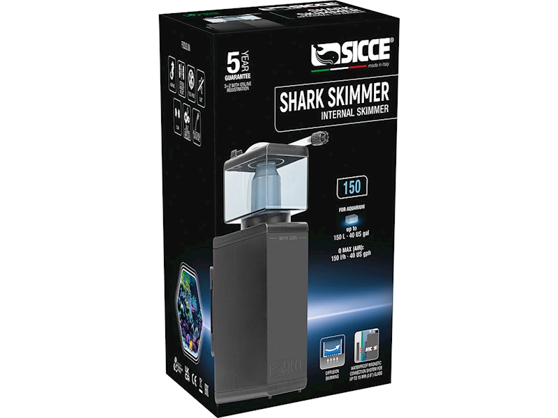 Shark Skimmer od Sicce je moderní vnitřní proteinový odpěňovač, navržený pro přímou integraci do mořských biotopů. Tento inovativní produkt je dostupný ve dvou variantách – Shark Skimmer 150 a Shark Skimmer 300 – a je vhodný pro akvária o objemu až 150 nebo 300 litrů, v závislosti na zatížení a typu biotopu.