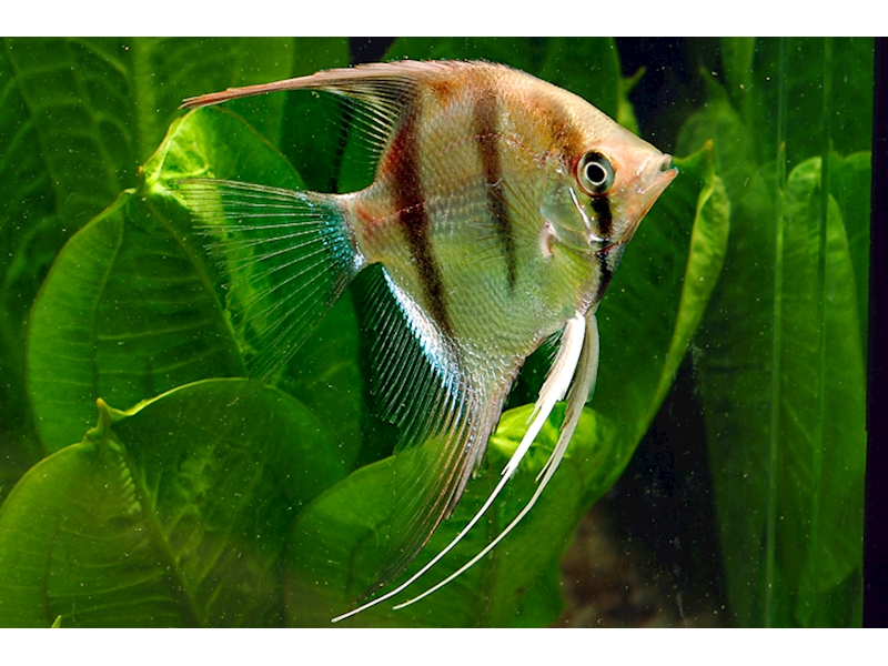 Podrobný popis: Skaláry vyžadují bezpodmínečně dostatek různorodé živé potravy, stejnou potravu přestanou po čase přijímat. Chováme je ve velkých nádržích, vysokých alespoň 50 cm (v dospělosti měří ryba na výšku až 22 cm), osázených úzkolistými rostlinami. Jsou to majestátní, dlouhověké, klidné ryby, pouze v období tření, kdy tvoří revíry, jsou agresivnější. Mohou být lekavé a citlivé na hluk, choulostivé při transportu. Mnohdy z neznámého důvodu hynou. Skaláry se dají chovat s menšími rybkami jen tehdy, pokud jsou na ně zvyklé od malička. Jinak se stává, že skaláry menší rybky požírají. Při nízké teplotě trpí nemocemi. Často k vyléčení postačí zvýšit teplotu (až na 32 °C). Jsou citlivé na chemikálie. Skalára amazonská má tmavší pruhy než skalára vysoká a dosahuje menších rozměrů. Existuje celá řada vyšlechtěných forem - kouřová, černá (Black Angelfish), mramorová (Marbeled Angelfish), zlatá, albín (Albino Angelfish), zebra, koi (Koi Angelfish), červenohlavá, stříbrná, atd.
