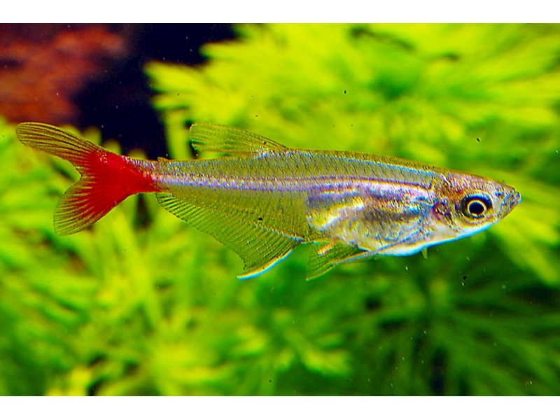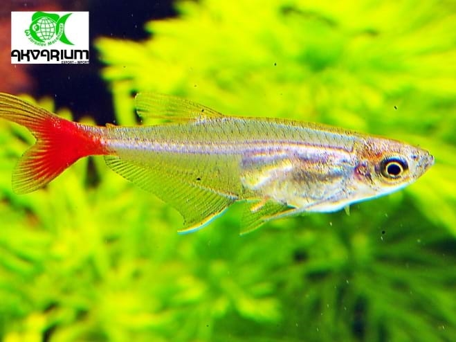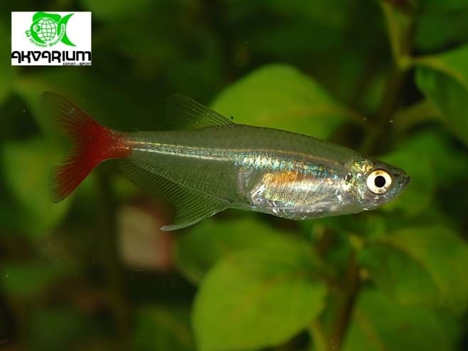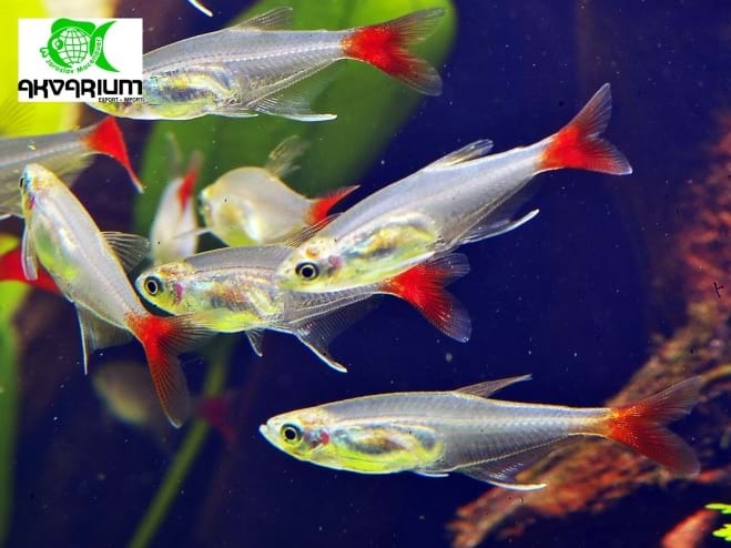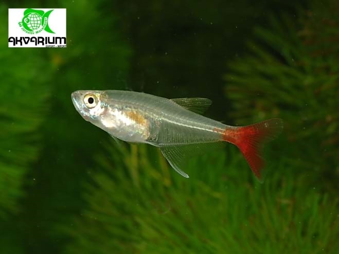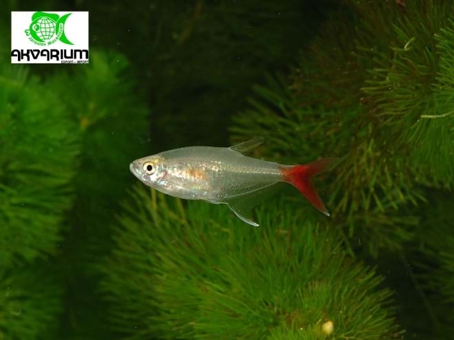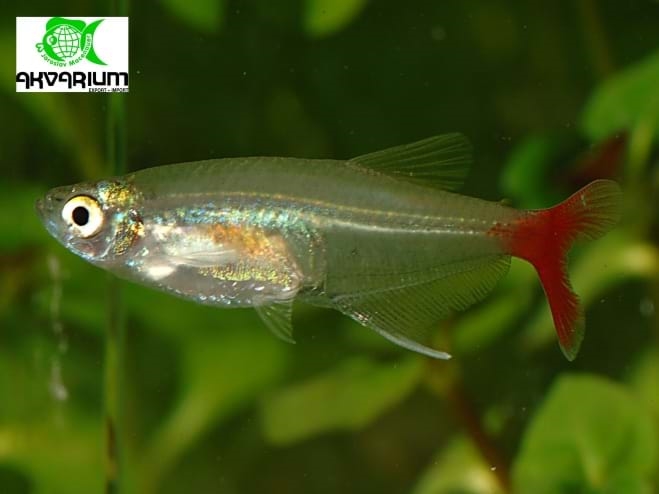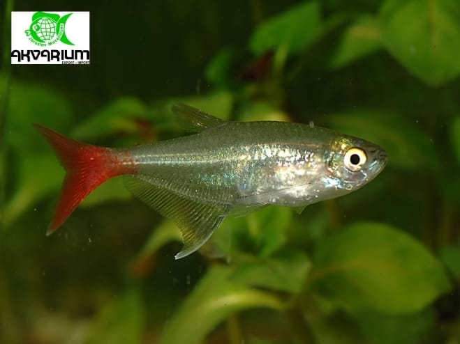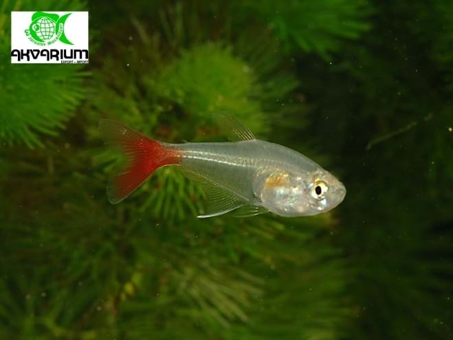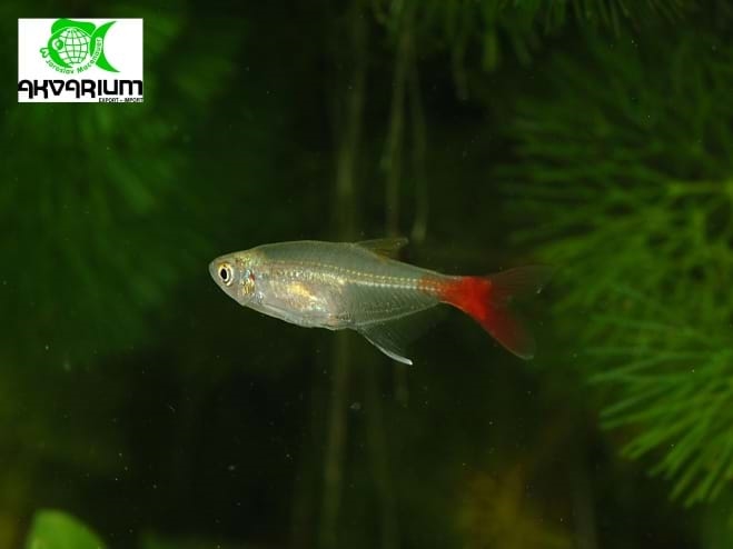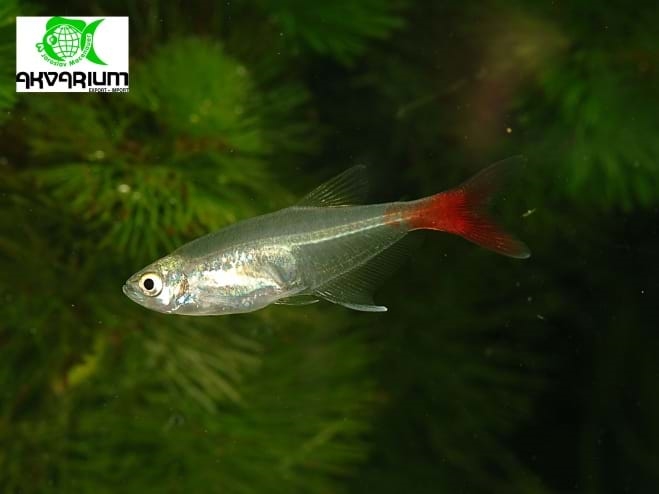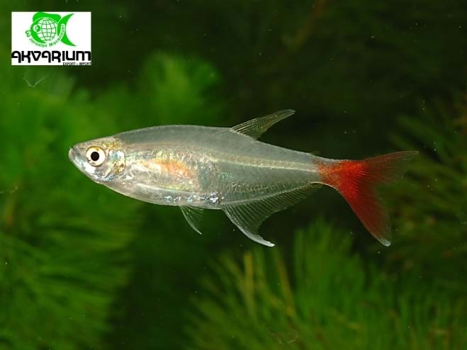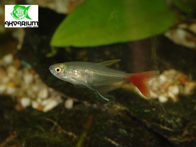 Podrobný popis: Její sklovitě průsvitné tělo je zbarveno žlutavě, šedavě až zelenavě, s nápadným bronzovým leskem na bocích. Ocasní násadec a celá hluboce vykrojená ocasní ploutev je jasně krvavě červená. Přední okraj řitní ploutve je srpovitý až vláknitě protažený, bíle lemovaný. K chovu i odchovu této nenáročné, velmi pěkné tetry vyhovuje středně tvrdá voda a alkalita do 5 °dKH.