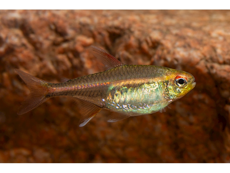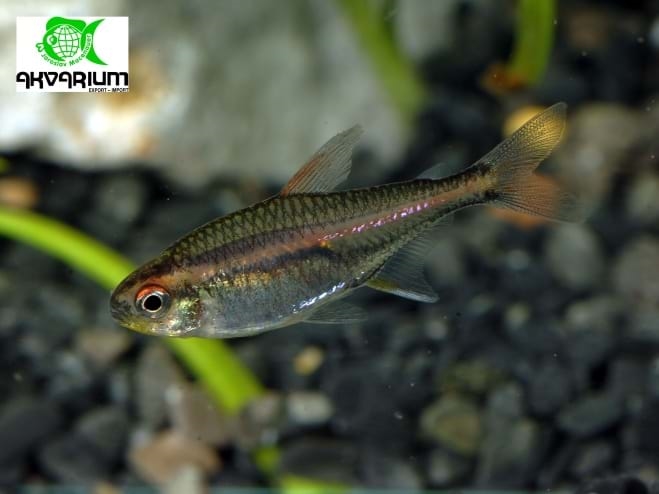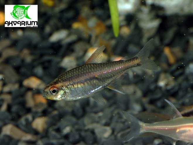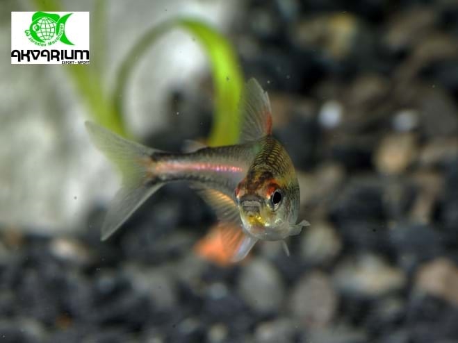 Podrobný popis: Tělo má průsvitně stříbřité, na bocích svítivě oranžový pruh. Chovejte v hejnu s menšími druhy rybek. Tento druh je vhodný i pro začátečníky. Její barvy nejvíce vyniknou nad tmavým dnem, při slabším osvětlení, rozptýleném plovoucími rostlinami. Nádrž by měla být s dostatkem rostlin a místem pro plavání. Udržovat v čistotě a pravidelně vyměňovat část vody, dlouhodobě zvýšená koncentrace dusíkatých látek jim nesvědčí. Vodu je vhodné filtrovat přes rašelinu.