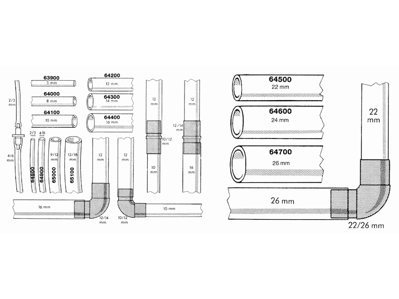 Praktická část příslušenství pro kutily. S natištěnm průměrem potrubí.